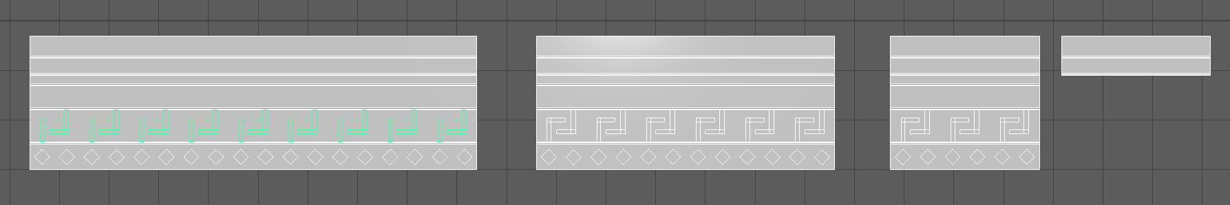 First, I built a base wall with all the decorations I wanted to use in that area. From that wall, I made variations of different lengths depending on what each level needed.