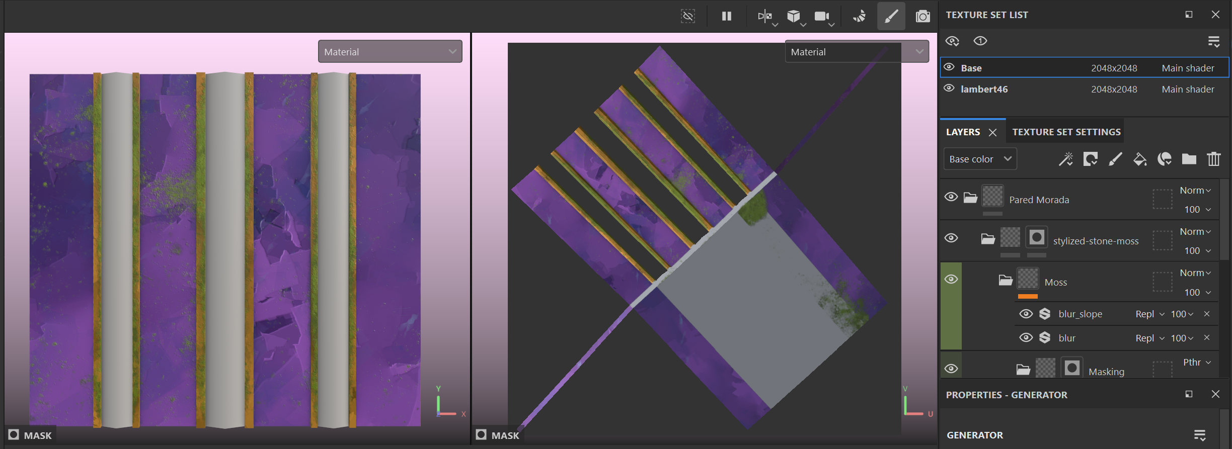 The walls in this area were designed with a different pattern, maintaining the stylised base but with variations in colour and layout that create a different atmosphere. This helps the player identify that they are moving into a new space without losing the overall identity of the game.